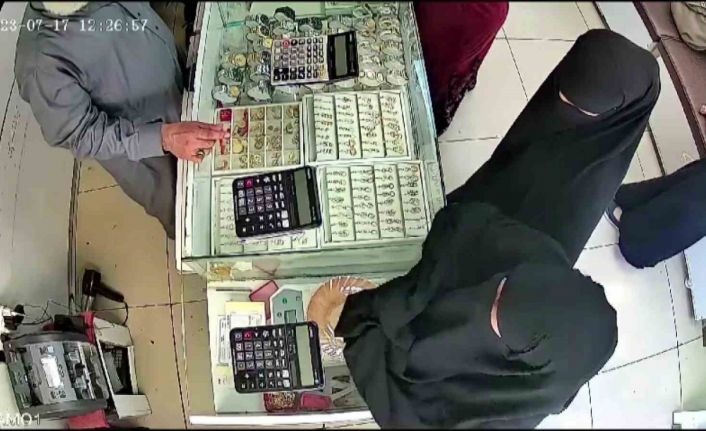 Adana’da kılık değiştirerek kuyumcudan 200 gram altın çaldığı öne sürülen 4 kadından 2’si yakalanıp tutuklanırken o anların saniye saniye görüntüleri de ortaya çıktı.