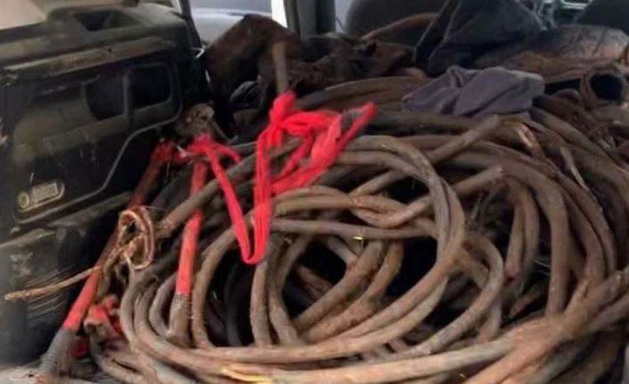 Şanlıurfa’da kiraladıkları araçla çiftçilerin sulamada kullandığı elektrik trafosunun kablolarını çalan 2 kişi, jandarma tarafından yakalandı.