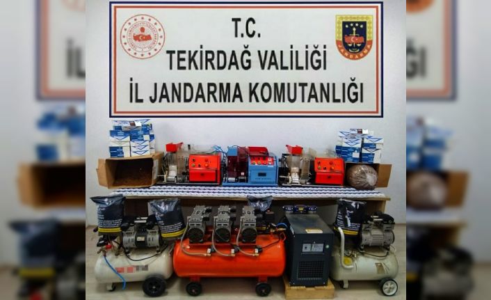 Edinilen bilgiye göre, Çerkezköy ilçesi Kızılpınar Mahallesi’nde A.Ş. isimli şahsın kiraladığı tek katlı evde kaçak sigara imal ettiği bilgisi üzerine Kızılpınar Jandarma Karakolu Komutanlığı ve KOM Şube ekiplerince eve operasyon düzenlendi. Evde yapılan aramada 3 adet sigara sarma makinesi, 3 adet kompresör, 1 adet türün nemlendirme makinesi, 44 kilogram kıyılmış tütün, 10 bin adet içime hazır makaron, 15 bin adet boş makaron, bin 500 adet makaron satımı için sigara kutusu, 199 adet bandrol ele geçirildi. Yakalanan şüpheli A.Ş., ifadesinin alınmasından sonra serbest bırakıldı.Kiralık tuttuğu evi kaçak sigara imalathanesine çevirmiş