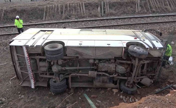 Kırıkkale’de işçileri taşıyan midibüsün kontrolden çıkarak tren yolundaki şarampole devrildiği kazada 15 kişi yaralandı.