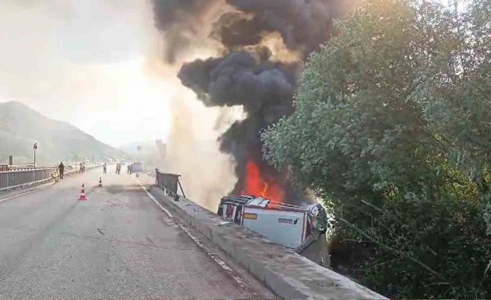 Kazadan yaklaşık 9 saat sonra, devrilen tır henüz bilinmeyen bir nedenle yanmaya başladı. İtfaiye ekiplerinin müdahalesiyle alevler kontrol altına alınarak söndürüldü. Yangın nedeniyle tırda büyük çapta hasar oluştu.