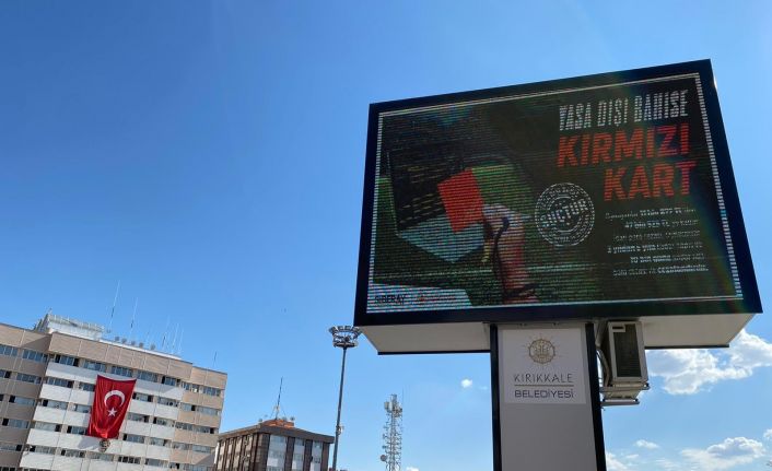 Kırıkkale’de illegal bahsi engellemek ve farkındalık oluşturmak amacıyla LED ekrana ‘yasa dışı bahse kırmızı kart’ görseli yansıtıldı.