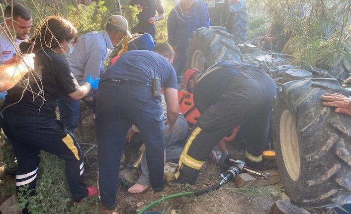 Devrilen traktörün altında kalan Z.İ. yaralandı.