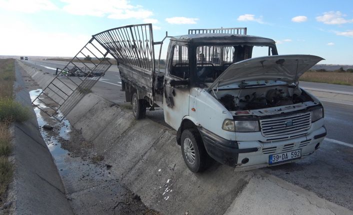 Kırklareli’de seyir halindeki kamyonet alev aldı