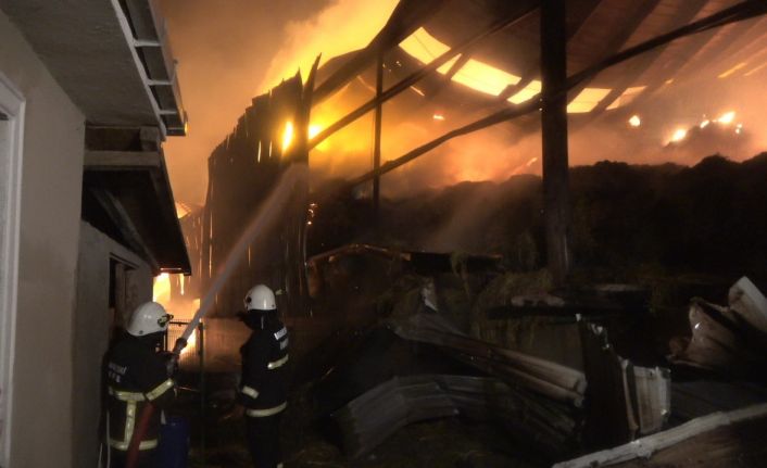 İtfaiye ekipleri tarafından müdahale devam ederken zaman zaman yem deposunda çömeler meydana geliyor.