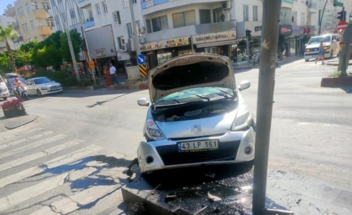 Kaldırıma çıkan otomobil metal dubayı yıktıktan sonra trafik lambasının direğine çarptıktan sonra durabildi. O anlar güvenlik kameralarına yansıdı.