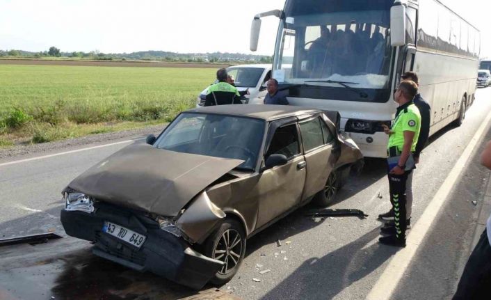 Antalya’nın Manavgat ilçesinde trafik ışıklarında bekleyen bir araca otel personellerini taşıyan servis otobüsünün çarpması sonucu zincirmele kaza meydana geldi. Kazada 2 araç sürücüsü yaralandı.