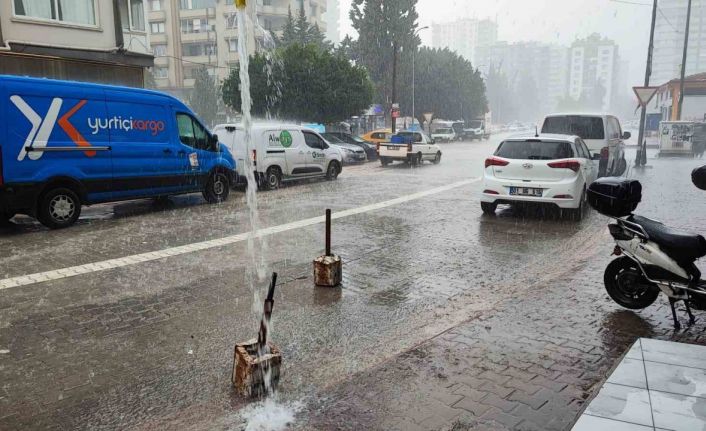 Adana’da 15-20 dakika süren yağmur nedeniyle bazı mahallelerde yollar nehre döndü.