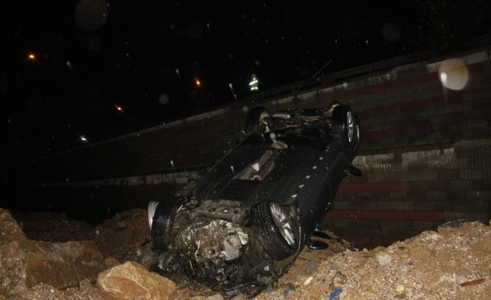 Manavgat’ta yol kenarındaki bariyerleri parçalayarak 10 metre yüksekten aşağıya uçan otomobilin sürücüsü kazayı burnu bile kanamadan atlattı.