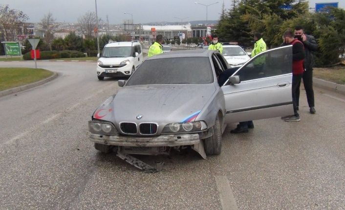Bursa’nın İnegöl ilçesinde kısıtlama saatlerinde meydana gelen kaza yürekleri ağza getirdi. Kayganlaşan yolda kontrolden çıkan otomobil, karşı şeride geçmeden son anda durdu. Otomobilse ağır hasar meydana gelirken, sürücü kazayı burnu bile kanamadan atlattı.