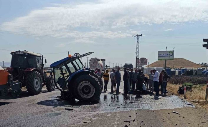 Mardin’in Kızıltepe ilçesinde tırın çarptığı traktör ortadan ikiye bölündü. Traktör sürücüsü hastaneye kaldırıldı.
