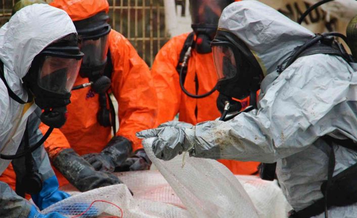 Kocaeli’nin Gebze ilçesinde gaz kokusu alan vatandaşların ihbarı üzerine tespit edilen kimyasal madde, ekiplerin incelemelerinin ardından kepçe yardımıyla bölgeden kaldırıldı.