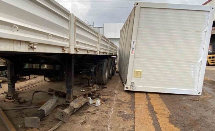 Kocaeli’nin Körfez ilçesinde tıra yüklenen konteyner ile dorse arasında sıkışan yabancı uyruklu işçi yaralandı.