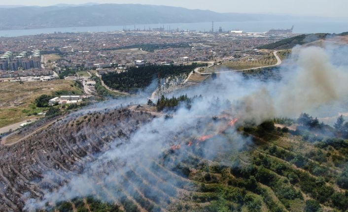 Kocaeli’nin Körfez ilçesinde ormanlık alanda çıkan yangının söndürülmesi için bölgeye çok sayıda ekip sevk edildi. Yanan orman ise havadan görüntülendi.