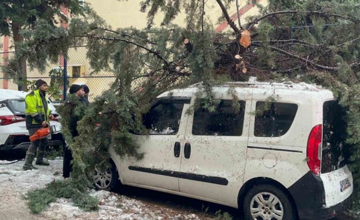 Kökünden sökülen ağaç park halindeki aracın üzerine devrildi