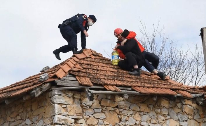 Sağlık kontrolü amacı ile ambulansa götürülen vatandaşın çatıdan indikten sonra ilk isteği ise maske oldu. Ambulansta ilk müdahalesi yapılan Çakmak daha sonra Dursunbey Belediye Başkanı Ramazan Bahçavan ile telefonda görüştü. Sağlık kontrollerinin ardından ifadesi alınan vatandaş, daha sonra serbest bırakıldı.