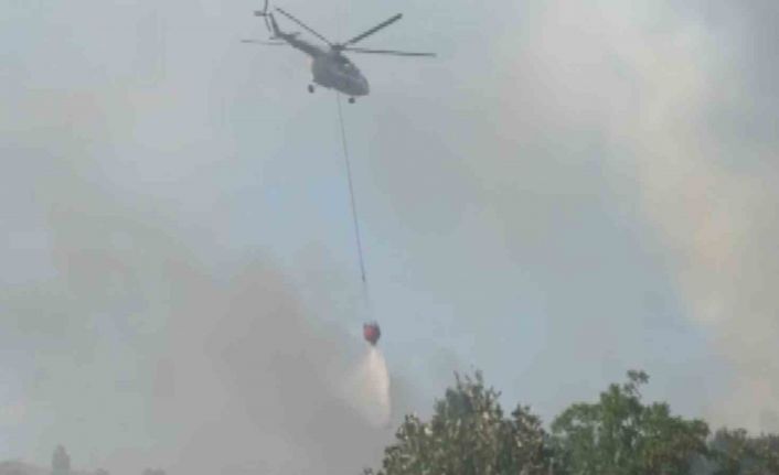 Adıyaman’da 30 hektarlık alanın küle döndüğü orman yangınına helikopterler ile müdahale ediliyor.