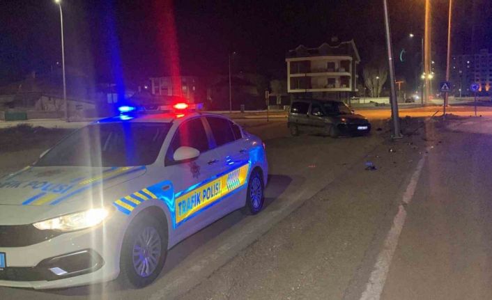 Karaman’da aydınlatma direğine çarpan hafif ticari aracın sürücüsü kazadan yara almadan kurtulurken, araçta büyük çapta maddi hasar oluştu.