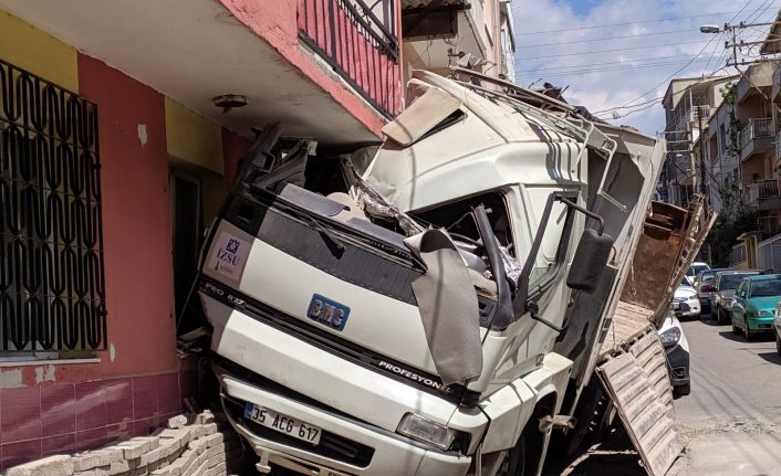 Edinilen bilgiye göre olay saat 13.30 sıralarında Osmangazi Mahallesi 592/12 sokak üzerinde meydana geldi. İddiaya göre C.A. yönetimindeki 35 ACG 617 plakalı bir kamyon, sürücüsünün direksiyon hakimiyetini kaybetmesi sonucu seyir halindeyken kontrolden çıktı. Kamyon, önce sokakta bulunan depoya ardından da 3 katlı apartmanın zemin katına çarparak durabildi. Kazayı görenlerin durumu bildirmesi üzerine kamyon şoförü, sağlık ekipleri tarafından ambulansla Ege Üniversitesi Tıp Fakültesi Hastanesine kaldırıldı. Burada tedavi altına alınan şoför C.A.’nın sağlık durumunun iyi olduğu öğrenildi.