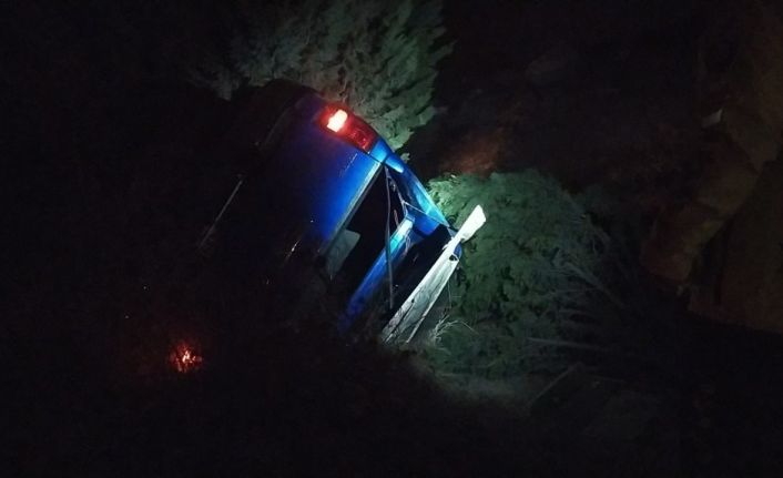 Çorum’da, sürücüsünün direksiyon hakimiyetini kaybettiği kamyonet ağaçları kırarak şarampole devrildi.