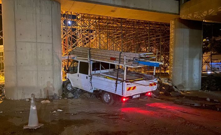 Kontrolden çıkan kamyonet viyadük inşaatına daldı: 4 yaralı