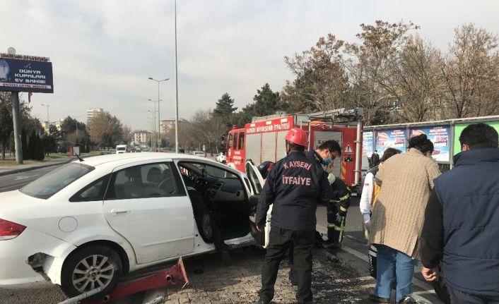 Kayseri’de sürücüsünün direksiyon hakimiyetini kaybettiği otomobil bariyerlere çarptı. Meydana gelen kazada 2 kişi yaralandı.