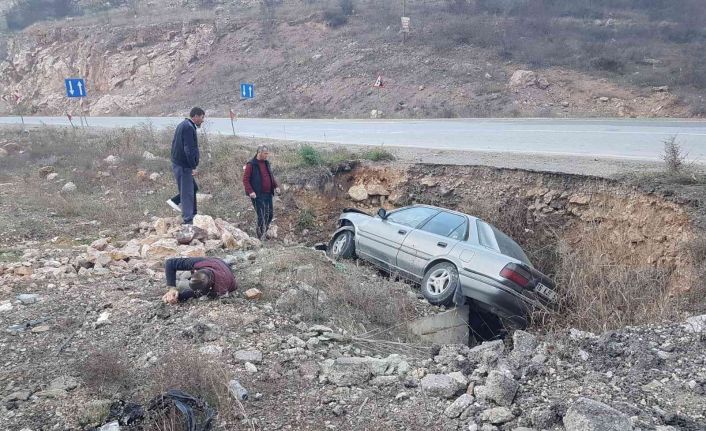 Bursa’da kontrolden çıkan otomobil kanala uçtu, yaralı sürücüyü vatandaşlar kurtardı.
