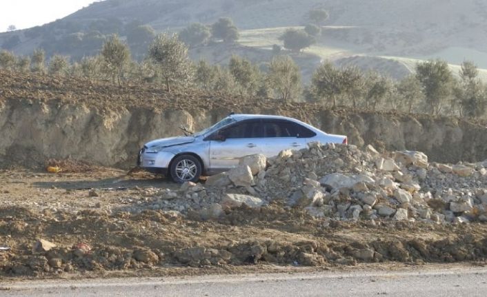 Kilis’te kontrolden çıkan otomobil karşı yola geçerek moloz yığınına çarptı.