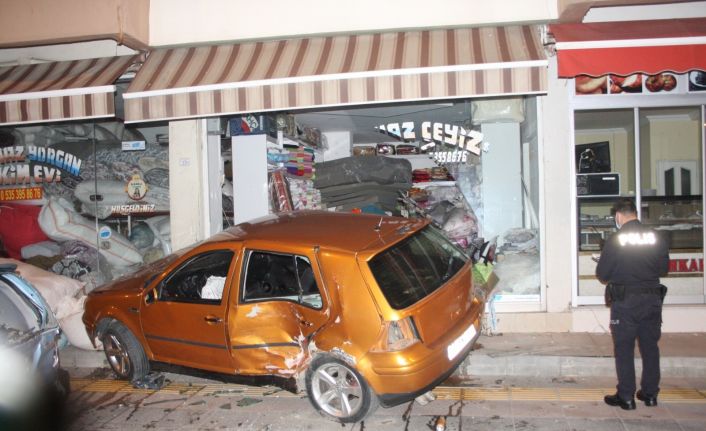 Antalya’da aşırı hız ve dikkatsizlik sonucu meydana gelen kazada, park halindeki araca çarpan otomobil, çeyiz mağazasının vitrinine çarparak durabildi. Park halindeki 2 araç ve çeyiz mağazasında büyük hasar oluşurken, araçta bulunan iki kişi kazayı hafif yaralı olarak atlattılar.