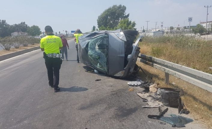 Antalya’nın Manavgat ilçesinde kontrolden çıkan otomobil refüje çarpıp takla attı. Kazada 2 kişi yaralandı.