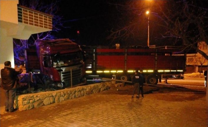 Kontrolden çıkan tır bahçe duvarına çarparak durabildi