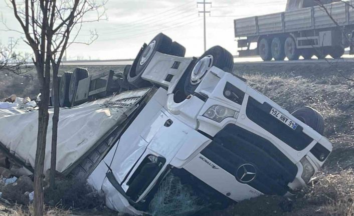 Konya’da sürücüsünün direksiyon hakimiyetini kaybettiği tır şarampole devrildi, kazada 2 kişi yaralandı.