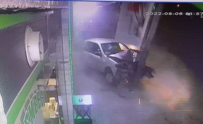 Bursa’da seyir halindeyken direksiyon hakimiyetini kaybeden sürücü, aydınlatma direğine çarptı. Araçta bulunan 3 kişi yaralanırken, çorba salonunun önündeki direk bir faciayı önledi. O anlar güvenlik kamerasına yansıdı.