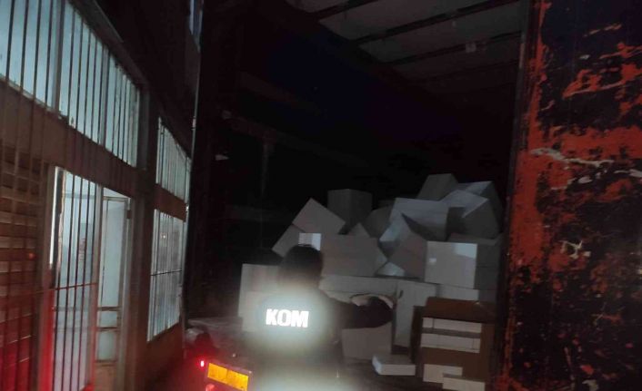 Edinilen bilgiye göre, Konya İl Emniyet Müdürlüğü Kaçakçılık ve Organize Suçlarla Mücadele (KOM) Şube Müdürlüğü ekipleri, devletin vergi kayıplarının engellenmesi ve haksız kazancın önüne geçilmesi amacıyla 5607 sayılı Kaçakçılıkla Mücadele Kanununa Muhalefet suçlarına yönelik yaptığı çalışmalar çerçevesinde bir tırı şüphe üzerine takibe aldı. Yapılan takipte tırın merkez Karatay ilçesi Şekerciler Sanayi Sitesinde bir iş yerine kaçak sigara ve makaron indirdiği esnada KOM ekipleri baskın yaparak şüphelileri suçüstü yakaladı. İş yerinde, tırda ve bir otomobilde yapılan aramada toplamda 4 milyon 610 bin adet bandrolsüz makaron, 15 bin adet doldurulmuş sigara, 250 paket kaçak sigara ve 2 bin 852 adet sökülmüş TAPDK bandrolü ele geçirildi. 5607 sayılı Kaçakçılıkla Mücadele Kanununa Muhalefet suçundan 3 şüpheli gözaltına alındı.