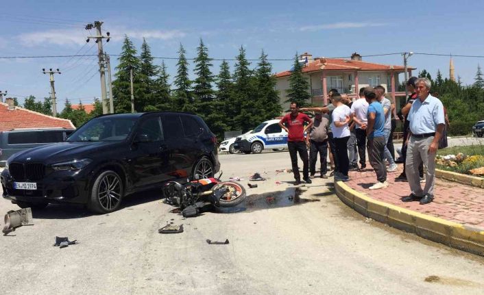 Kaza, saat 11.30 sıralarında Kulu ilçesi Meteoroloji Kavşağında meydana geldi. Edinilen bilgiye göre, Kulu’dan Konya istikameti seyir halinde M.D., idaresindeki yabancı plakalı EN MD 1974 plakalı BMW marka cip, kavşakta Abdullah P., (21) idaresindeki 07 ATE 992 plakalı motosikletle çarptı. Çarpmanın etkisiyle motosiklette bulunan sürücü ve yolcu Mehmet Ali G. (27) yola savruldu. Çevredeki vatandaşların ihbarı üzerine olay yerine sağlık ve polis ekipleri sevk edildi. Sağlık ekiplerinin ilk müdahalesinin ardından yaralılar, ambulansla Kulu Devlet Hastanesine sevk edildi. Tedavi altına alınan yaralıların sağlık durumlarının ciddiyetini koruduğu öğrenildi. Kazaya karışan araç sürücüsü ise ifadesi alınmak üzere polis merkezine götürüldü.