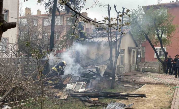 Konya’da apartmanın bahçesindeki kulübe, çocukların attığı torpil nedeniyle çıkan yangında yanarak kullanılamaz hale geldi.
