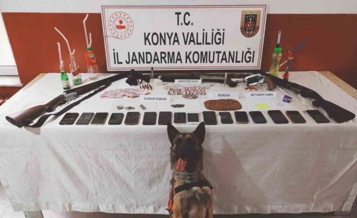 Konya’nın Çumra ilçesinde jandarma tarafından düzenlenen uyuşturucu operasyonunda çeşitli uyuşturucu maddeler ve silahlar ele geçirilirken, 4 şüpheli tutuklanarak cezaevine gönderildi.