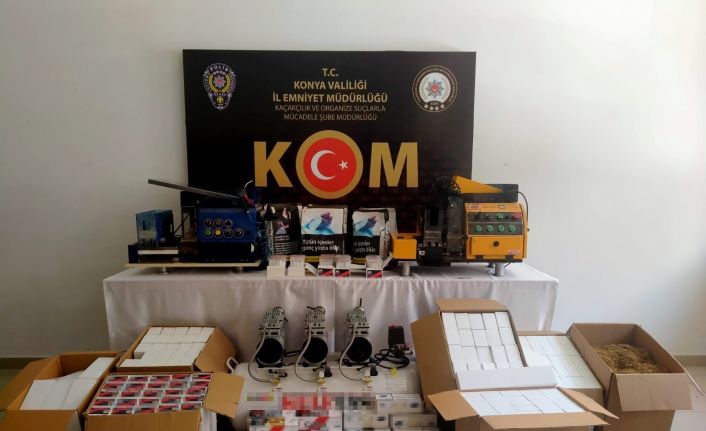 Konya’da polisin düzenlediği operasyonda 16 kilo 900 gram kaçak tütün ve 78 bin adet boş makaron ele geçirildi.