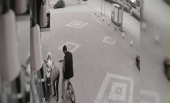 Yaşanan elektrikli bisiklet hırsızlığı ise güvenlik kameralarına yansıdı. Görüntülerde bisikletle gelen 2 şahsın öncelikle tespit ettikleri elektrikli motosikleti bir süre gözlemlediği, şahıslardan birinin elektrikli motosikletin yanına gittiği, diğer şahsın ise bisikletle gözcülük yaptıktan sonra demir makasını arkadaşına verdiği ve demir makasıyla kilidi keserek elektrikli motosikleti alıp oradan uzaklaştıkları görülüyor.