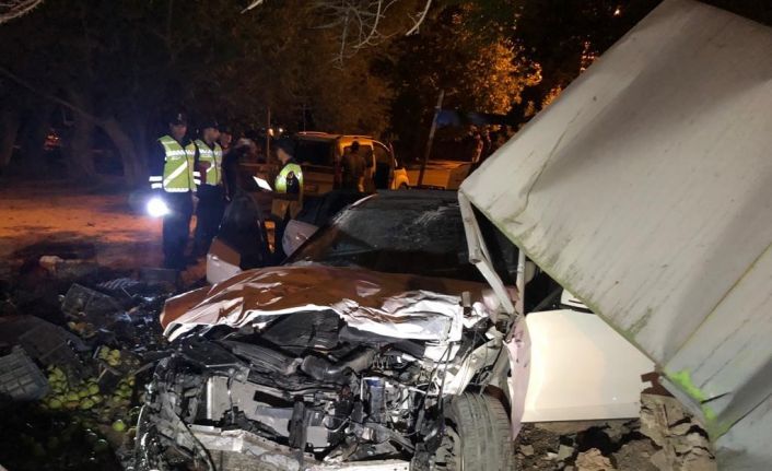 Konya’nın Ereğli ilçesinde kontrolden çıkan otomobilin yol kenarında bulunan elma alım merkezi olarak kullanılan bir iş yerinin bahçesine uçması sonucu 4 kişi yaralandı.