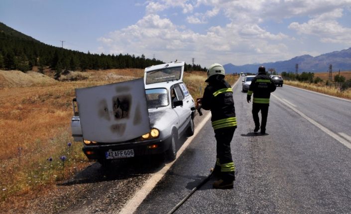 Konya’da seyir halindeki otomobilde yangın