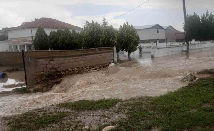 Konya’nın Kulu ilçesinde şiddetli yağmur nedeniyle meydana gelen selde, bazı evlerin bahçe duvarları yıkılırken, bazı bahçe kapıları da yerinden söküldü.