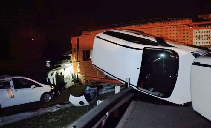 Konya’da sıfır araçları taşıyan tır devrildi
