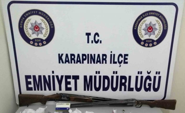 Konya’nın Karapınar ilçesinde polisin düzenlediği operasyonda silah ve uyuşturucu madde ele geçirildi.