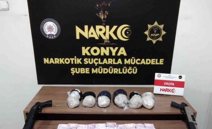 Konya’da polisin bir eve düzenlediği operasyonda 6 kilo 110 gram eroin ve 1 milyon 222 bin lira suç unsuru para ele geçirildi. Olayla ilgili "Topal" lakaplı uyuşturucu satıcısı ve yardımcısı tutuklanarak cezaevine gönderildi.