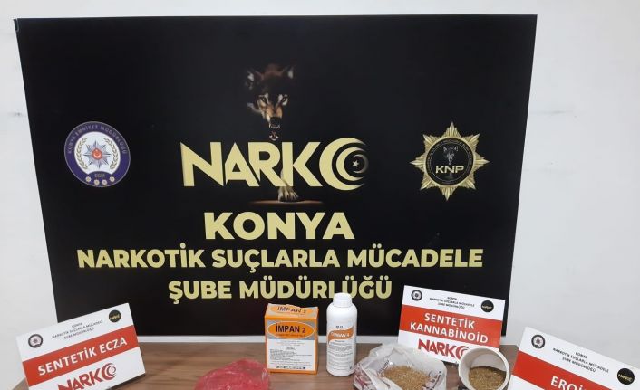 Edinilen bilgiye göre, Konya İl Emniyet Müdürlüğü Narkotik Suçlarla Mücadele Şube Müdürlüğü ekiplerinin sokak satıcılarına yönelik yaptığı detaylı çalışmalar neticesinde, Çelebi, Sahibiata, Tatlıcak ve Alakova mahallelerindeki ikametlerde ve Ankara Yolu uygulama noktasında bir araçta yapılan aramalarda uyuşturucu madde ele geçirildi. Narkotik ekiplerinin titiz çalışmaları sonucunda 4 ikamet ve 1 araçta yapılan aramalarda, 550 gram metamfetamin, 130,5 gram eroin, 53 adet uyuşturucu hap, 88 gram tütüne emdirilmiş uyuşturucu madde, uyuşturucu yapımında kullanılan 2 parça sıvı-toz ve 75 gram sentetik madde ele geçirildi. Uyuşturucu ticaretinde kullanılan 1 adet hassas terazi, 100 adet silah mermisi ve 25 bin 890 TL’ye de el konuldu.