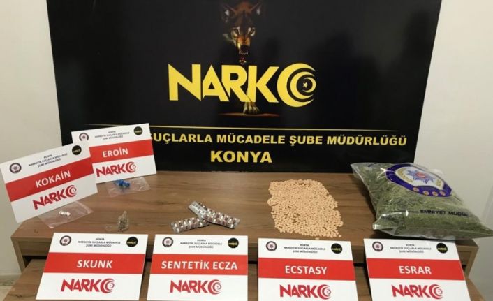 Edinilen bilgiye göre, Konya Emniyet Müdürlüğü Narkotik Suçlarla Mücadele Şube Müdürlüğü ekipleri, kent merkezinde uyuşturucu satışı ve kente farklı illerden uyuşturucu madde sevkıyatı yapan şahısların yakalanması için çalışma başlattı. Yürütülen çalışmalar kapsamında 5 şüpheliyi belirleyen polis, fiziki takibin ardından belirlenen kent merkezindeki adreslere baskın yaptı. Kent merkezindeki baskınlarda 5 şüpheli yakalanarak gözaltına alındı. Gözaltına alınan şahısların evlerinde yapılan aramalarda toplamda 1 kilogram esrar, 4 adet uyuşturucu hap, 3 kök hint kenevir bitkisi ele geçirildi.