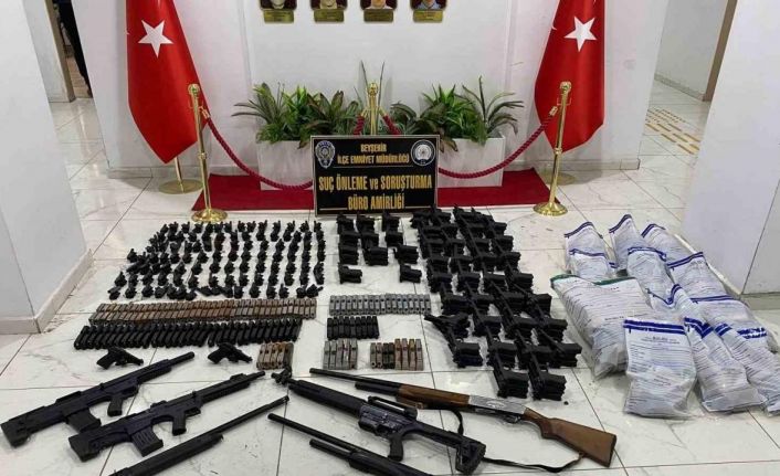 Konya’nın Beyşehir ilçesinde çeşitli suçlardan aranan ve polis tarafından yakalanan 14 şahıstan 8’i tutuklandı. Silah kaçakçılığına yönelik çalışmalarda ise, çok sayıda silah ve silah malzemeleri ele geçirildi.