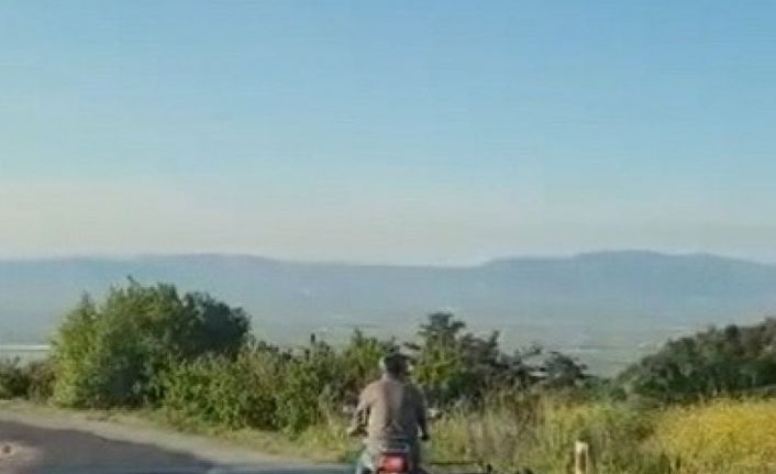 Manisa’nın Salihli ilçesinde bir sürücü sepetli motosikletin arkasına bağladığı köpeği zorla götürmeye çalıştı. O anlar bir vatandaş tarafından cep telefonuyla görüntüledi.