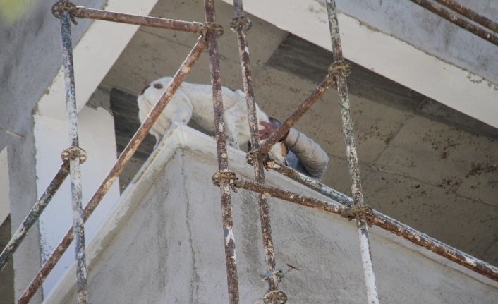 Konya’nın Beyşehir ilçesinde, inşaat halindeki binanın son katına çıkan sokak köpeği, kendisini yakalayıp indirmeye çalışan işçilere zor anlar yaşattı.